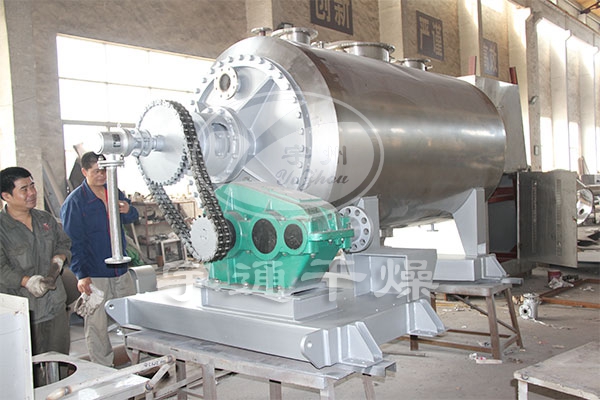 磷酸鐵鋰干燥工程之臥式攪拌真空干燥機是利用物料中的水份在真空狀態下沸點降低的特點來進行干燥的設備。